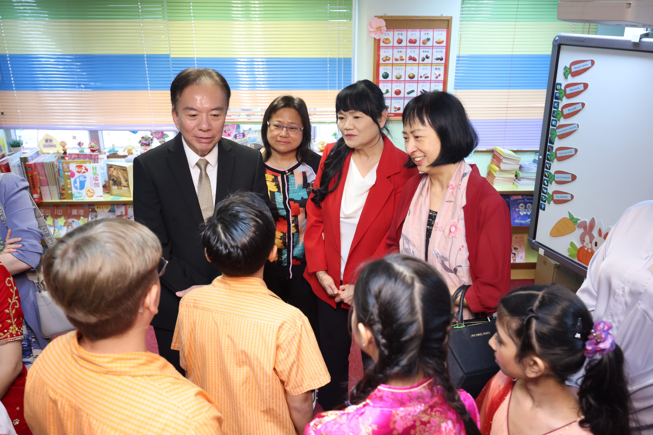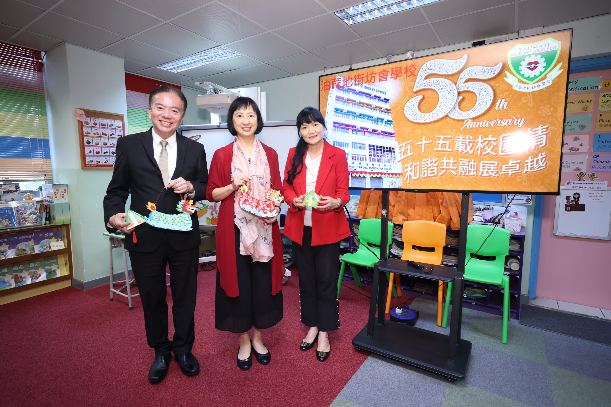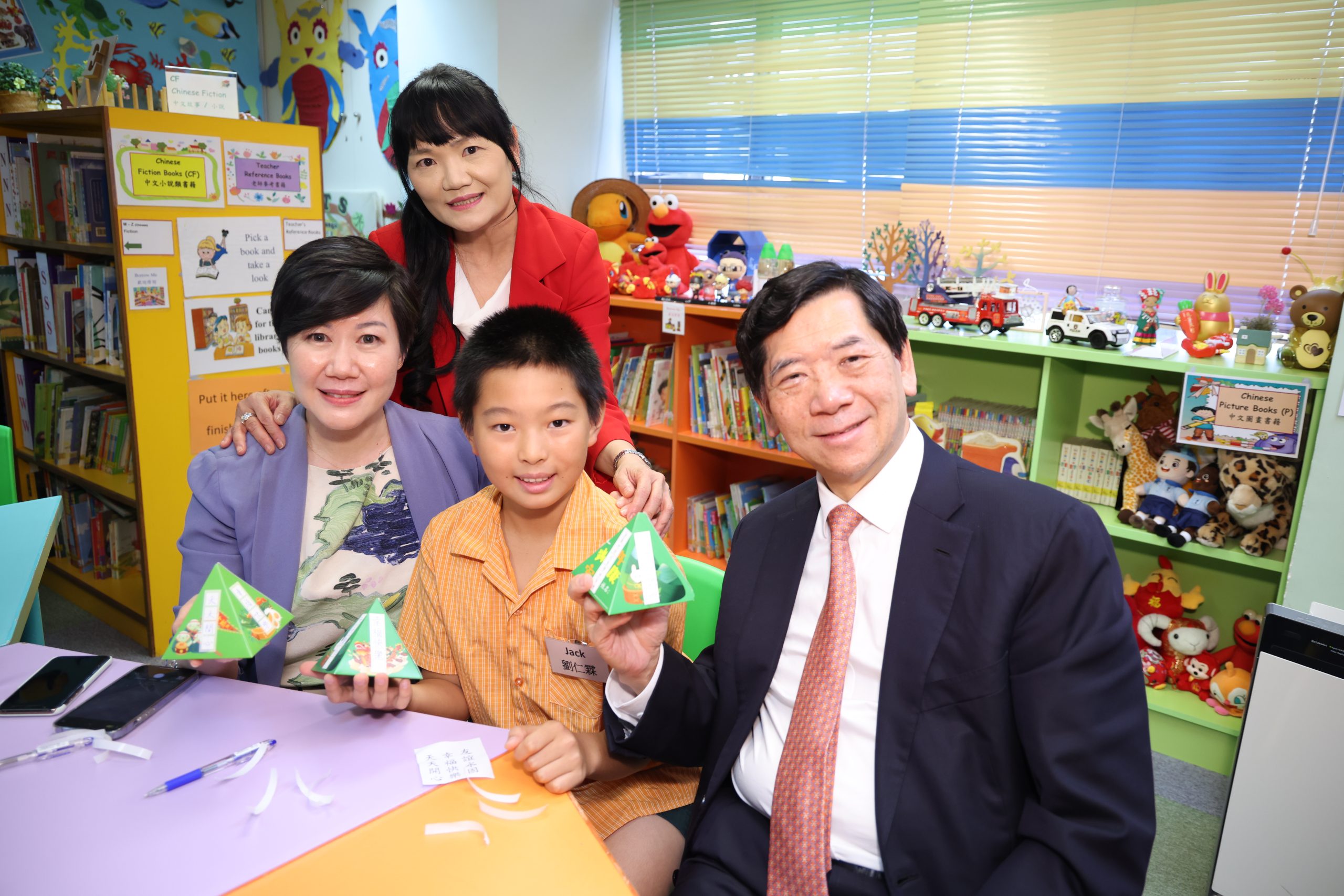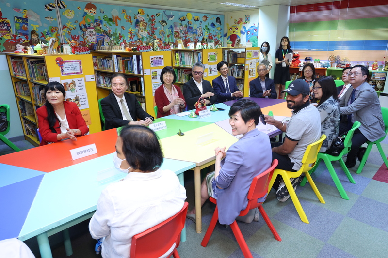 The Chairman of the Education Commission (EC), Dr David Wong, and members of the EC, accompanied by Permanent Secretary for Education, Ms Michelle Li, visited Yaumati Kaifong Association School on 19 June 2023 to learn about its implementation of national education, support for non-Chinese speaking (NCS) students and home-school cooperation.